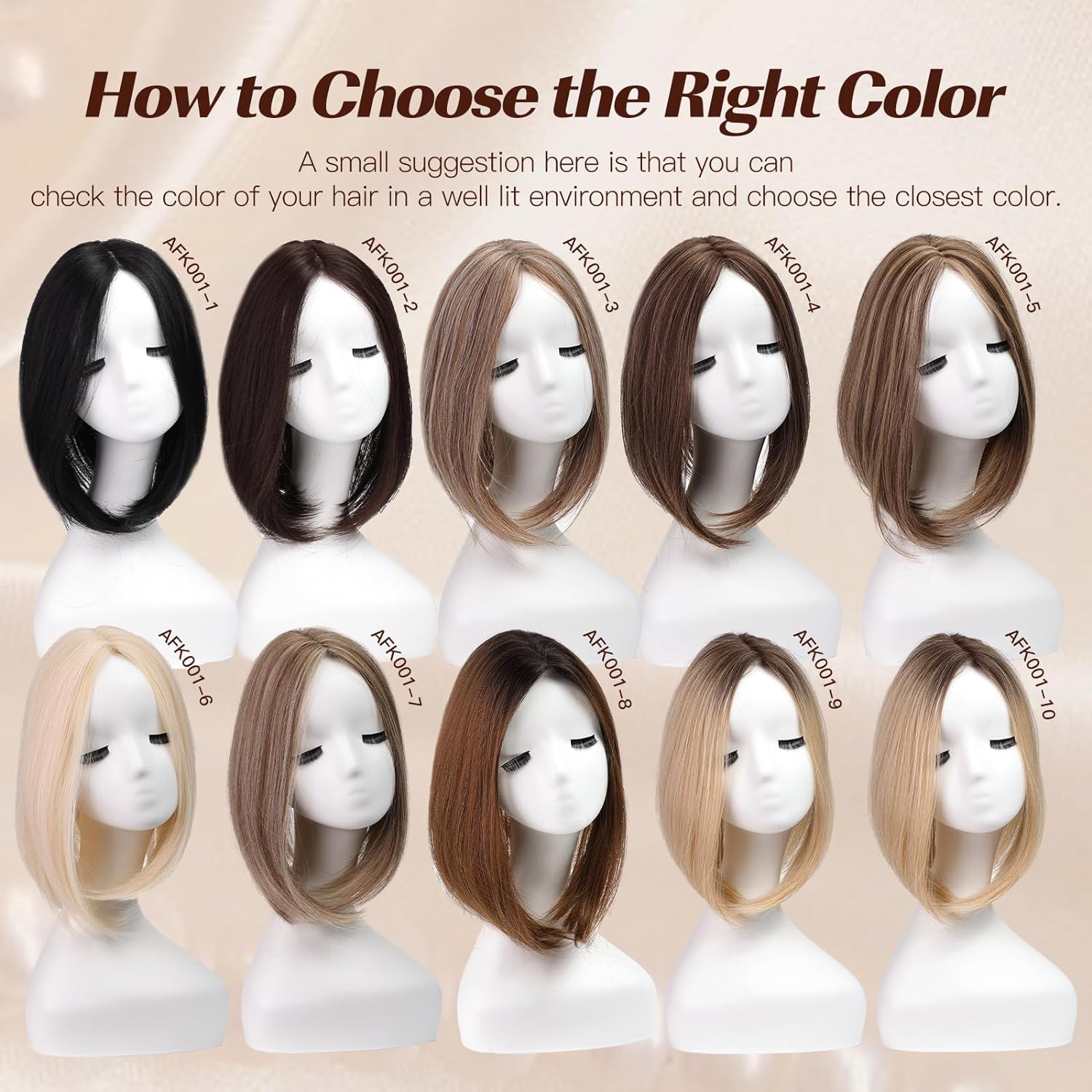 Color Matching: Don't be afraid to go a shade lighter or darker than your hair, take into consideration your hair coloring at its roots and ends, along with any highlights! Have fun with it!